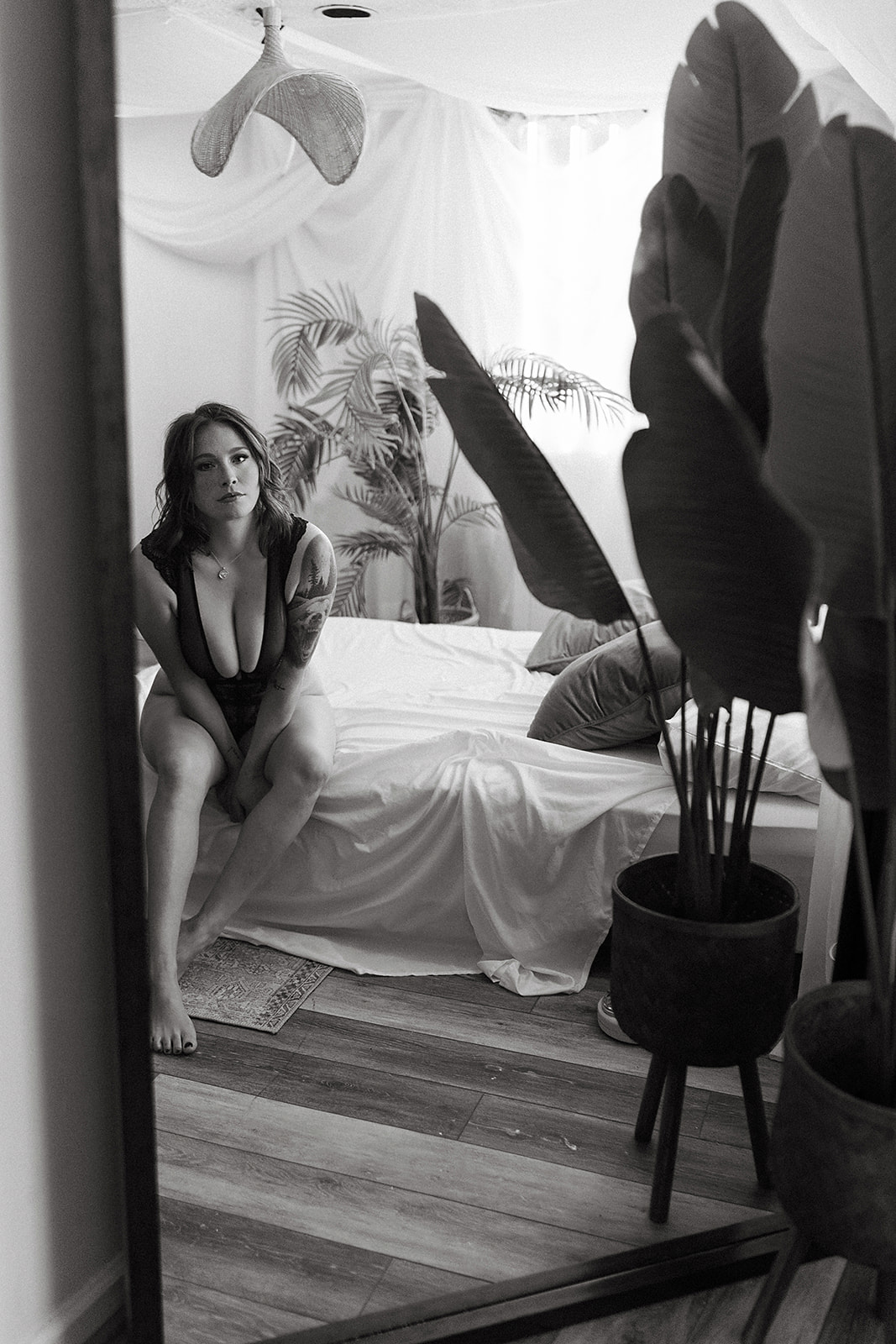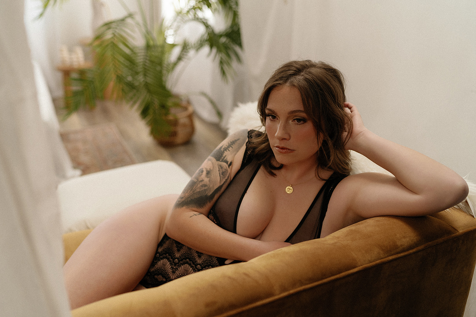 Krysten’s boudoir shoot happened because she was a giveaway winner (so exciting!) For the giveaway shoot, we did one outfit, but for a regular shoot I tend to do 3-4 outfits. This particular piece is a fan-favorite from Mentionables! And as always, I guided her through every single pose by showing her the pose myself first, and then making adjustments to her when she did it. Everyone’s always worried if they look “awkward,” but if you feel awkward posing you’re probably doing it right!
